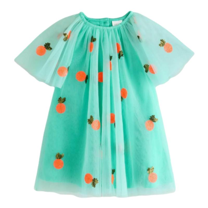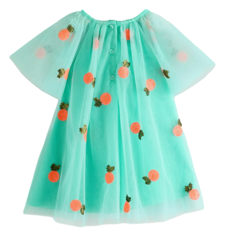 Spruce up her summer styling with this mesh dress. In a flowy silhouette with cute sequin motifs and pretty angel sleeves, this dress is fully lined and complete with button-back fastening.