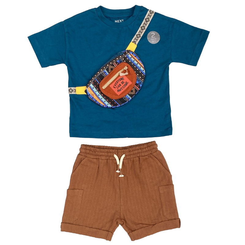 Blue short sleeve bumbag T-Shirt & Shorts Set