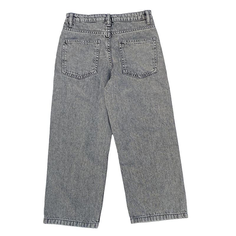 5-pocket jeans in washed denim. Loose fit through the hip and thigh with a dropped crotch and wider leg. Adjustable waist for the perfect fit. Zip fly and button.