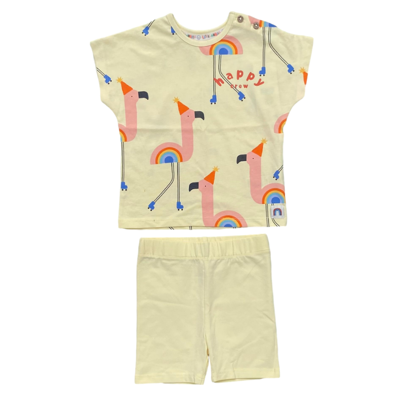 Little Angels yellow flamingo T-shirt and shorts set