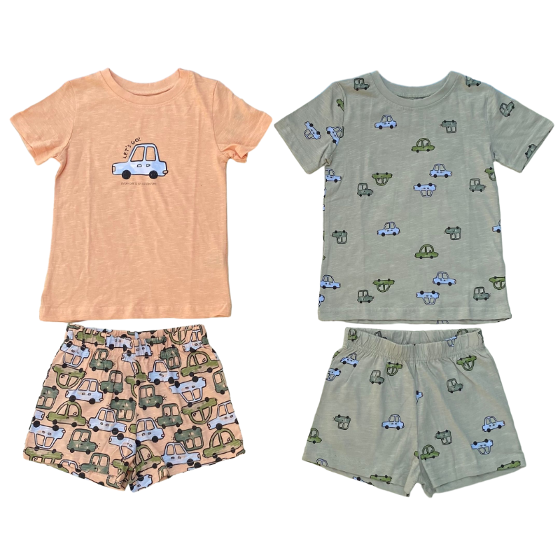 Race cars small ribbed shorts 2 piece set pyjamas