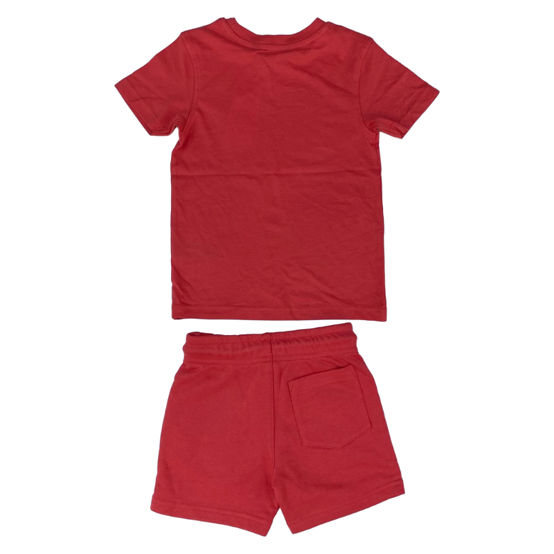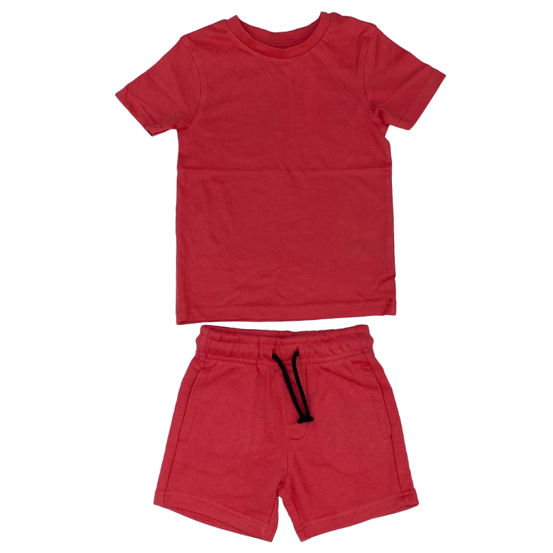 Red T-shirt and shorts outfit